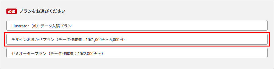 1お見積もり・ご注文フォームの「デザインおまかせプラン」を選択してください。